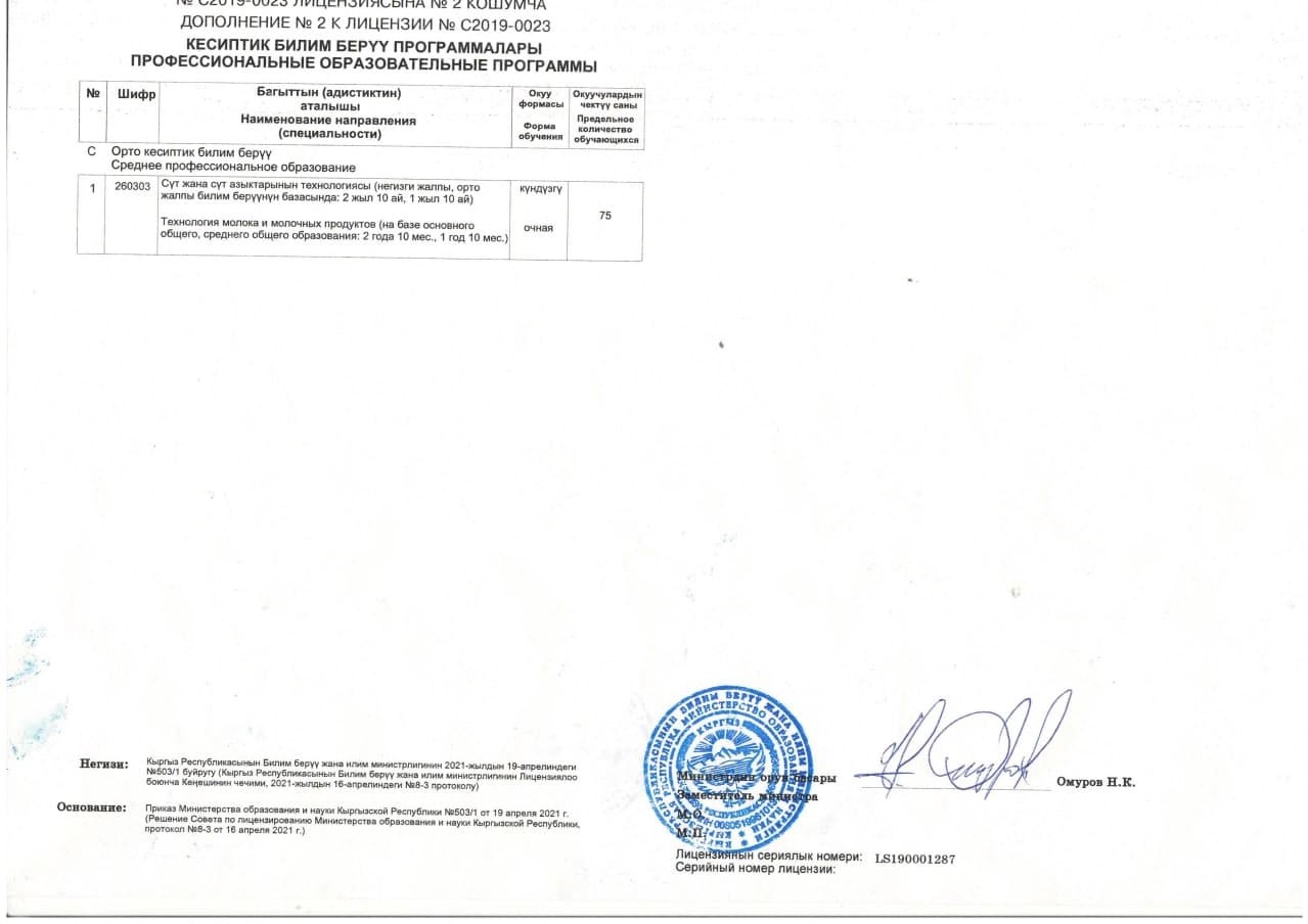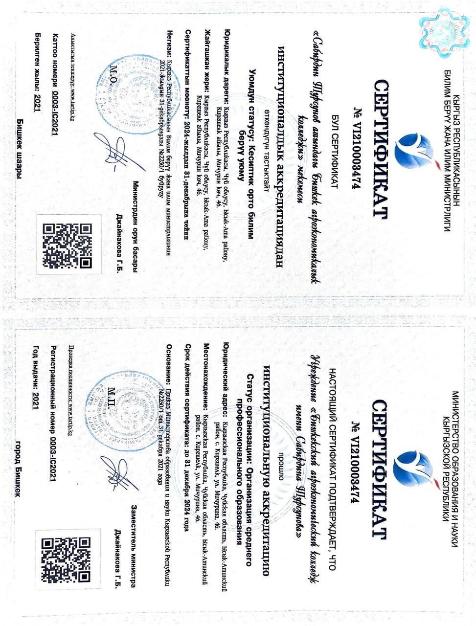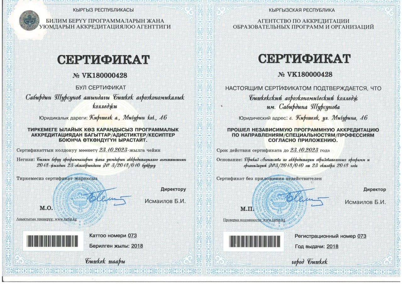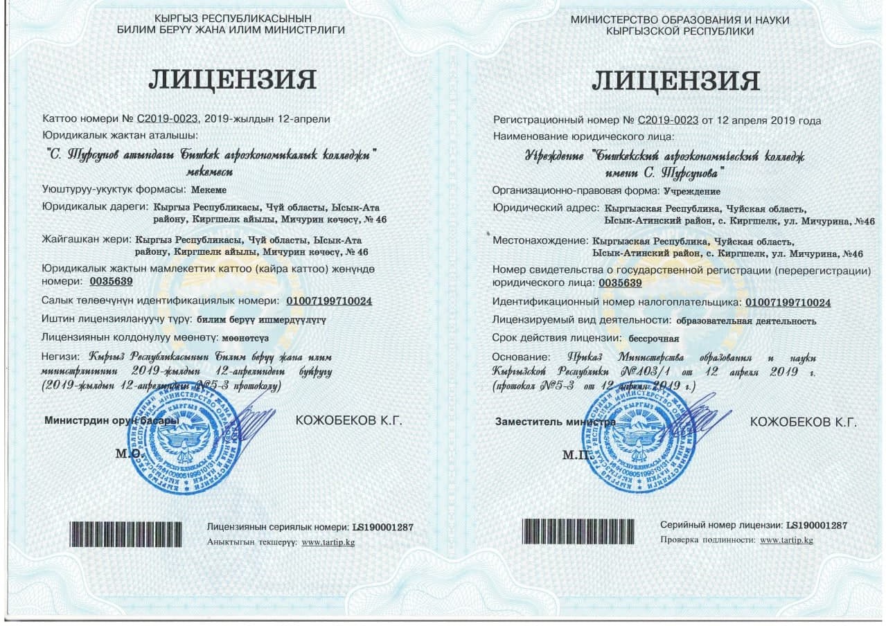 Бишкекский агроэкономический колледж им. С. Турсунова