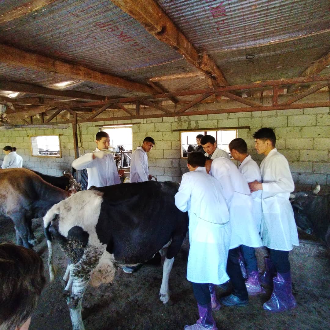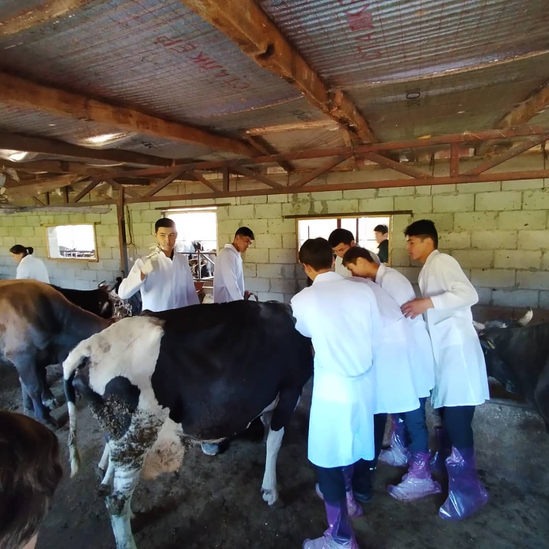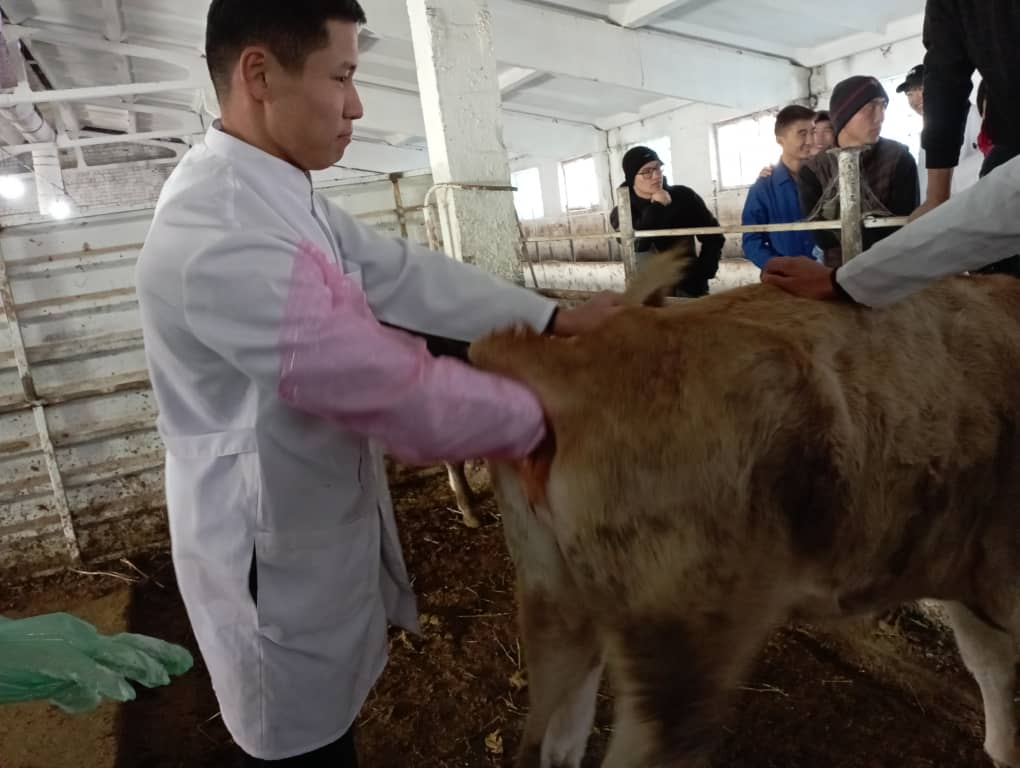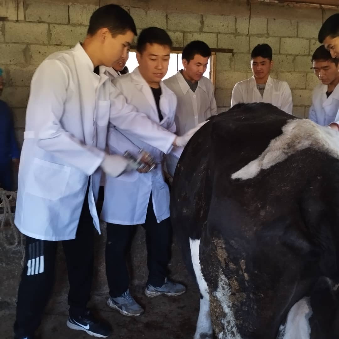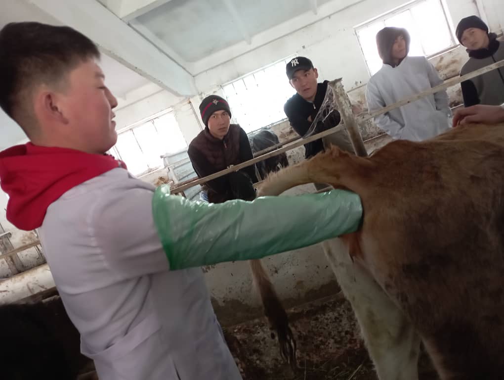 Практика по искусственному осеменению 3 Вет А и 3Вет Б с Люксембург "ферма" объясняет тонкостям осеменения ,осеменатор Айылчиев Турат.