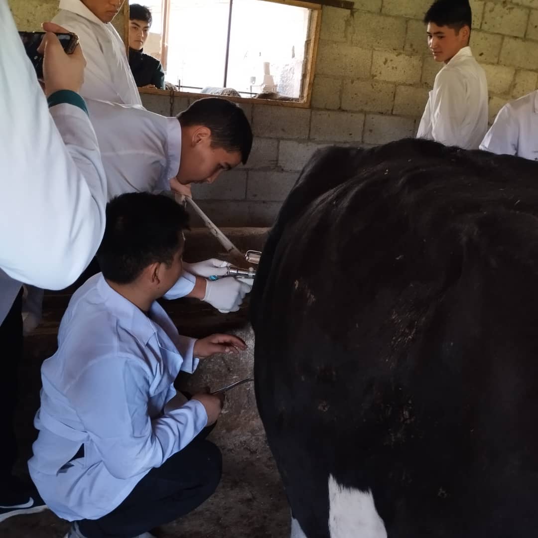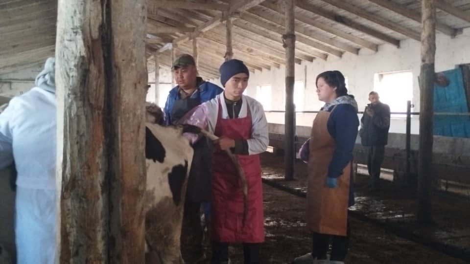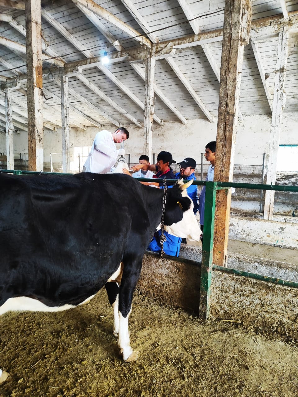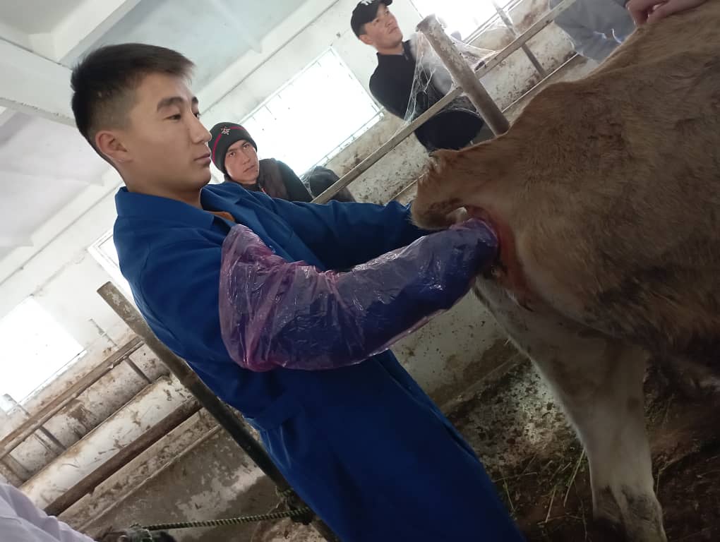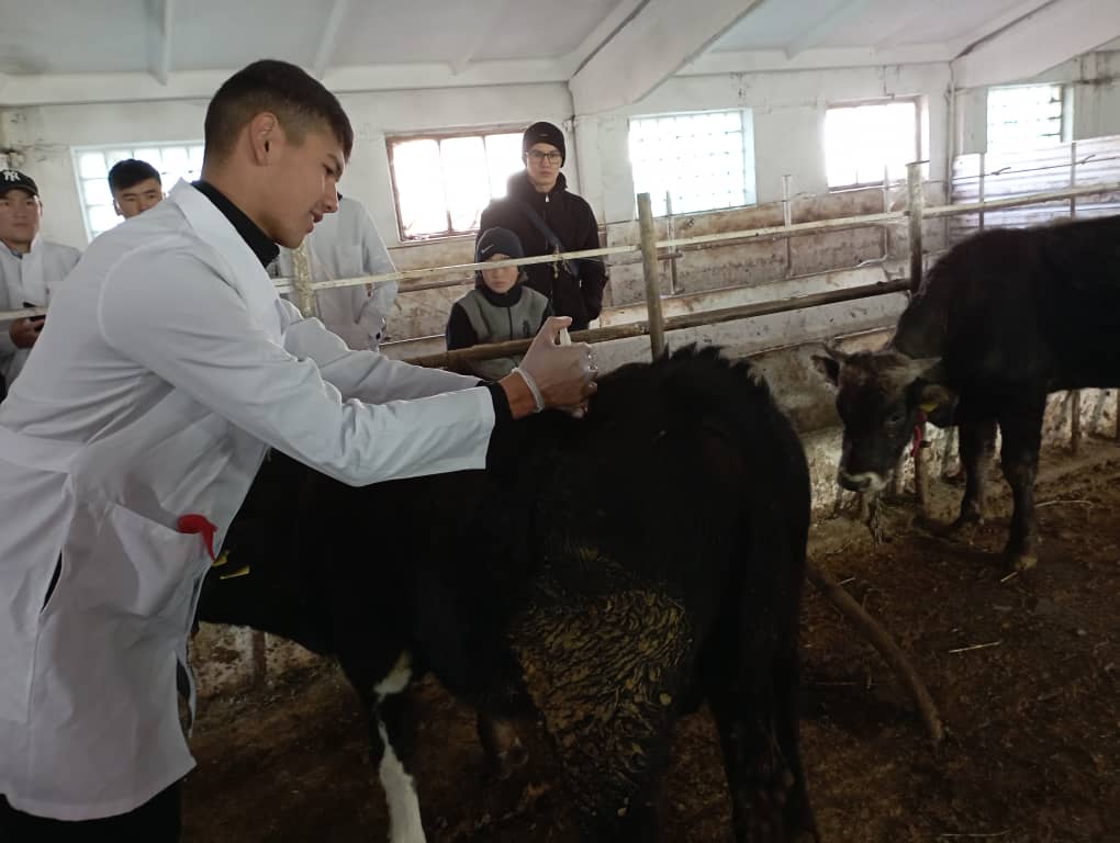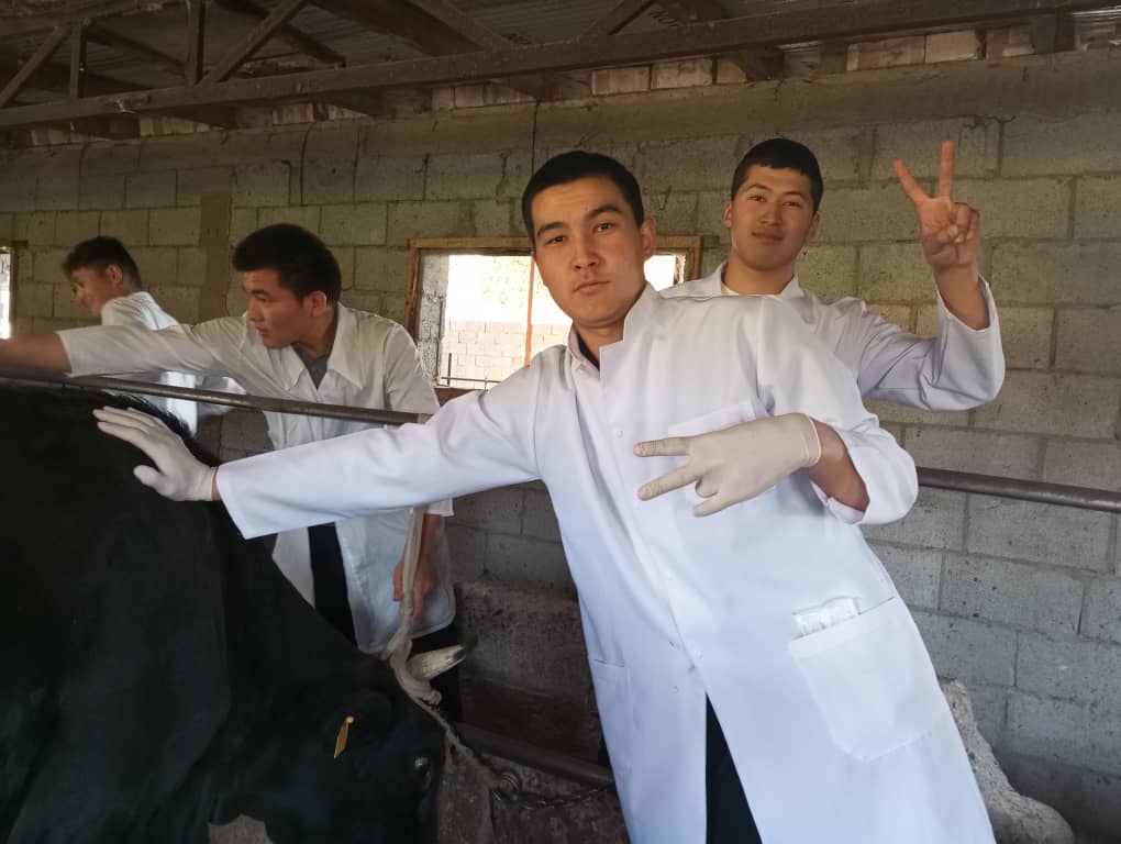Практика по искусственному осеменению 3 Вет А и 3Вет Б с Люксембург "ферма" объясняет тонкостям осеменения ,осеменатор Айылчиев Турат.