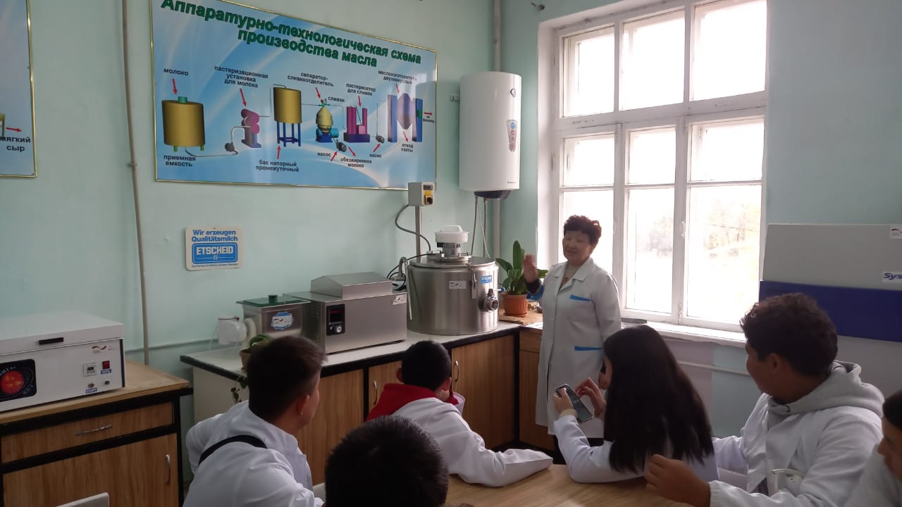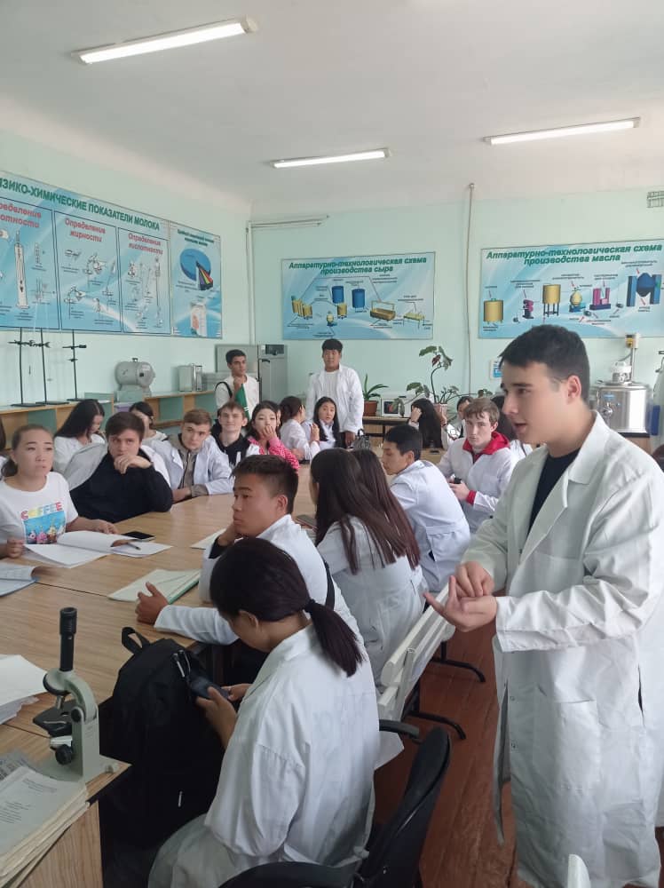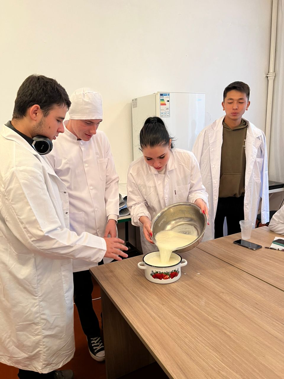 Кара- Балтинский технико- экономический колледж им. М.Т. Ибрагимова. Группа 1, 2, технолог в рамках академической мобильности. В лаборатории молока и молочных продуктов