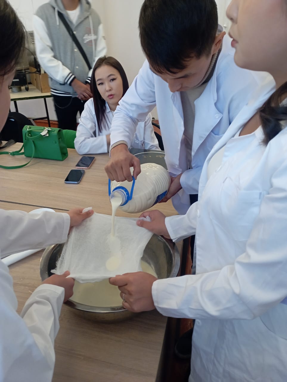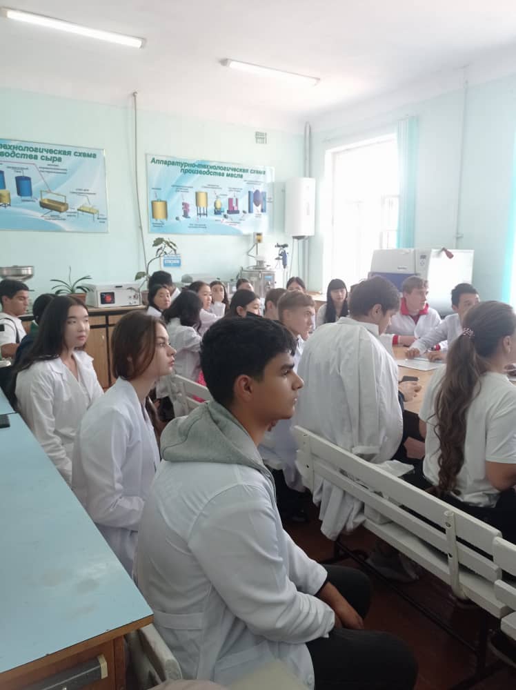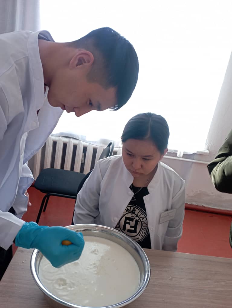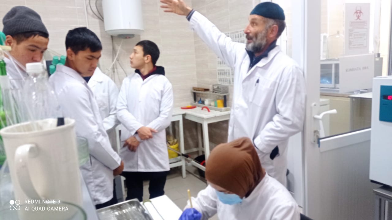 Кара- Балтинский технико- экономический колледж им. М.Т. Ибрагимова. Группа 1, 2, технолог в рамках академической мобильности. В лаборатории молока и молочных продуктов