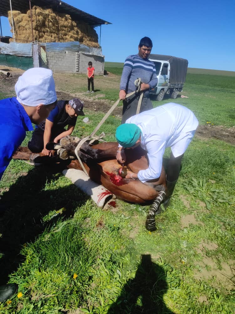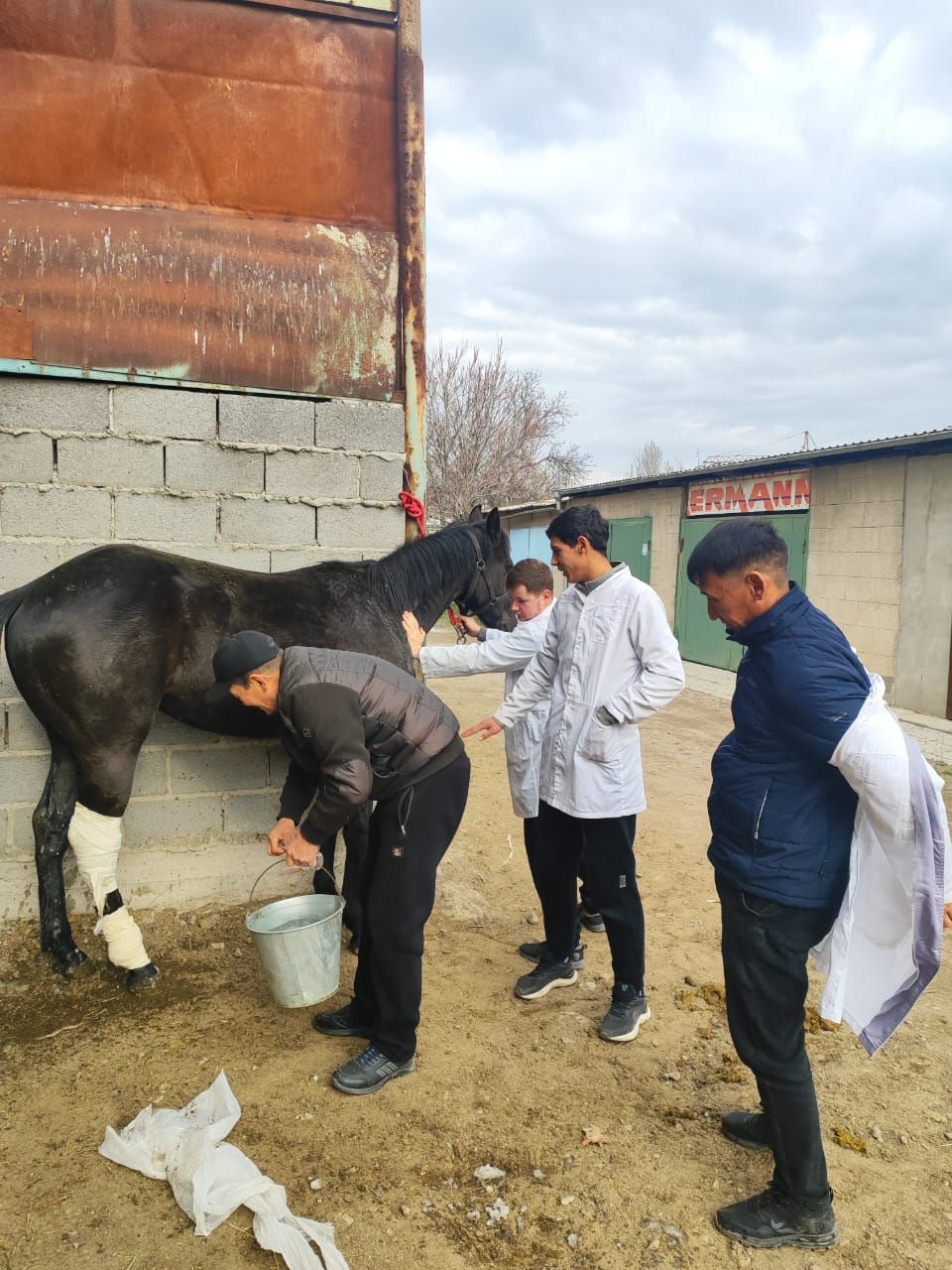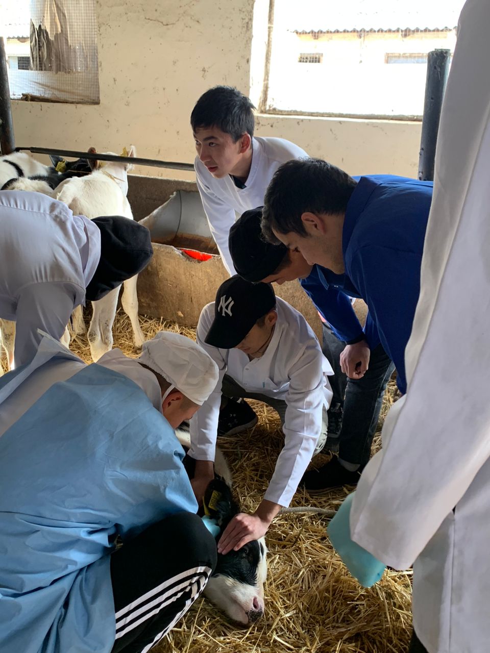 Группа 3 Вет А на выездном уроке по предмету Акушерство, в клинике Кыргызско-Турецкого университета Манас