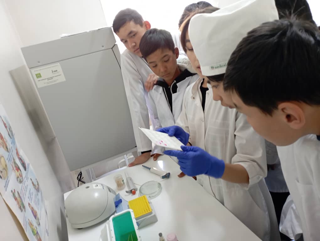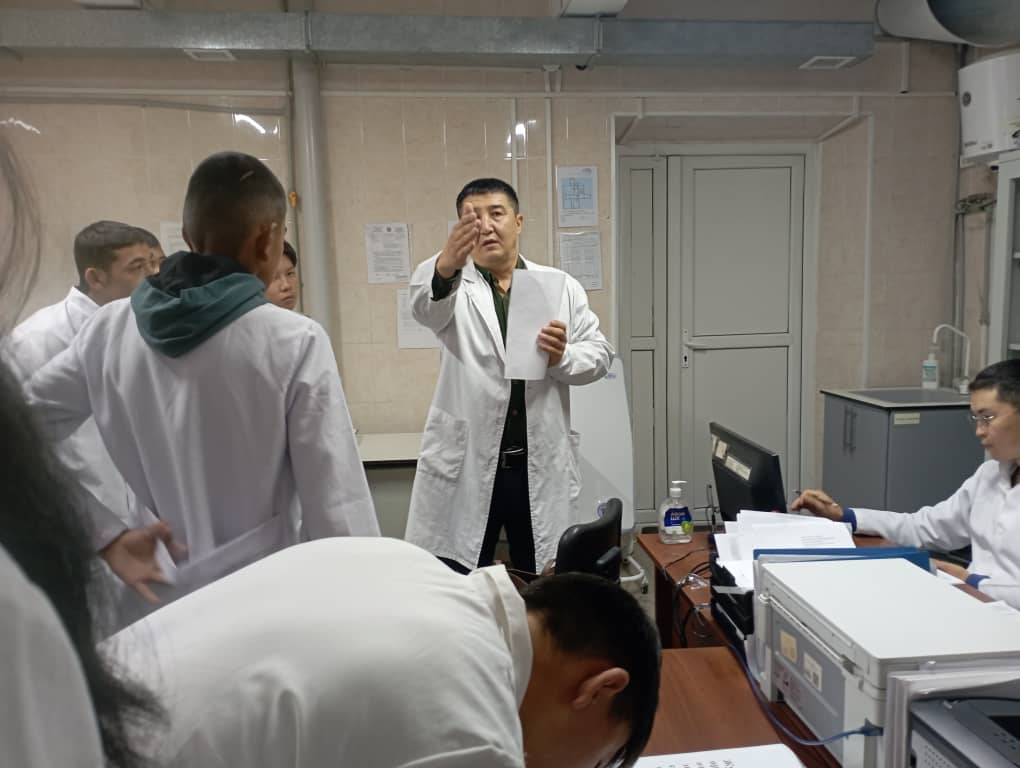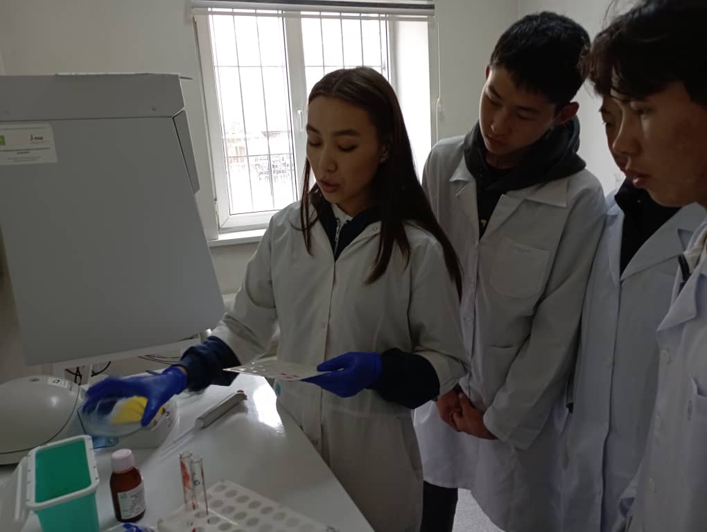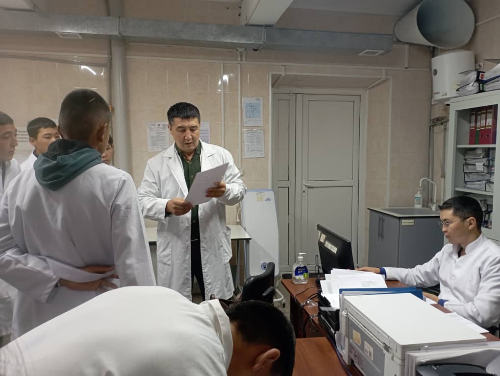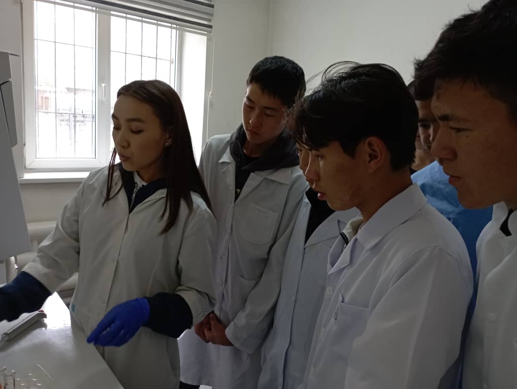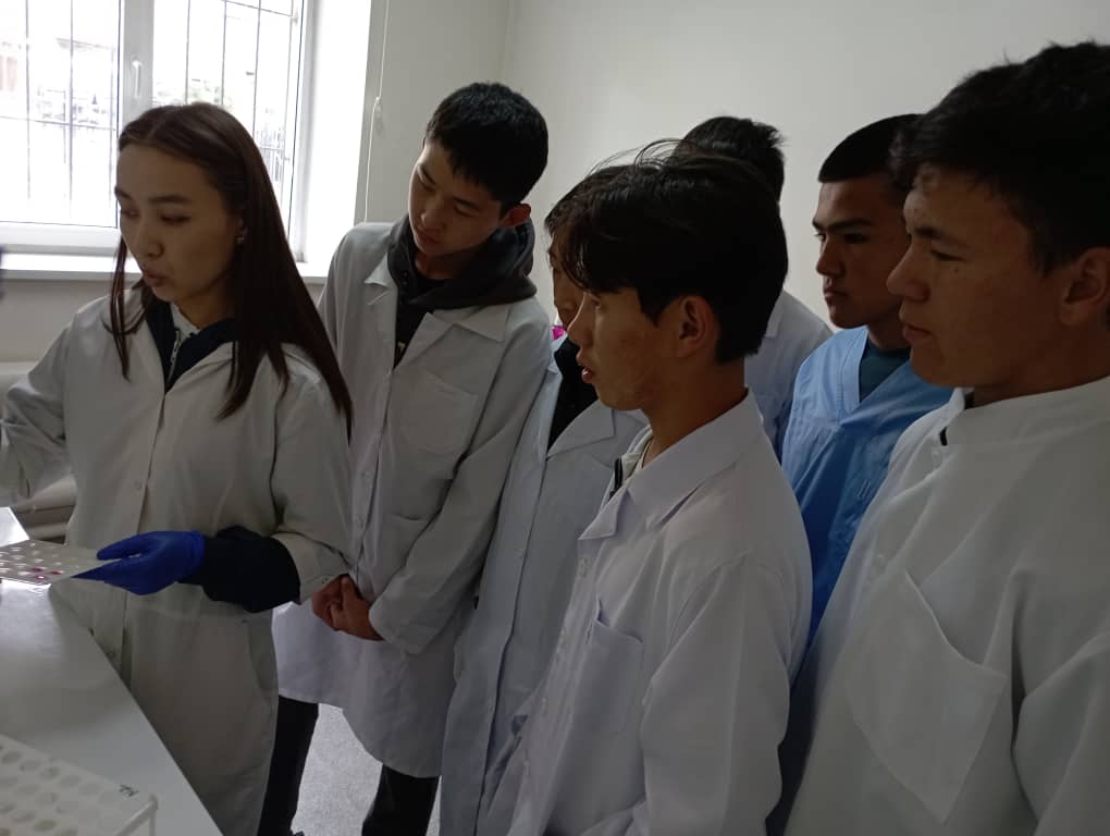 Выездной урок в группе 1 Вет Б, в лаборатории по изучению бруцеллеза, Кыргызского научно-исследовательского института ветеринарии им.А.Дуйшеева. Серологическое исследование (РБТ, РИД. и тд.)