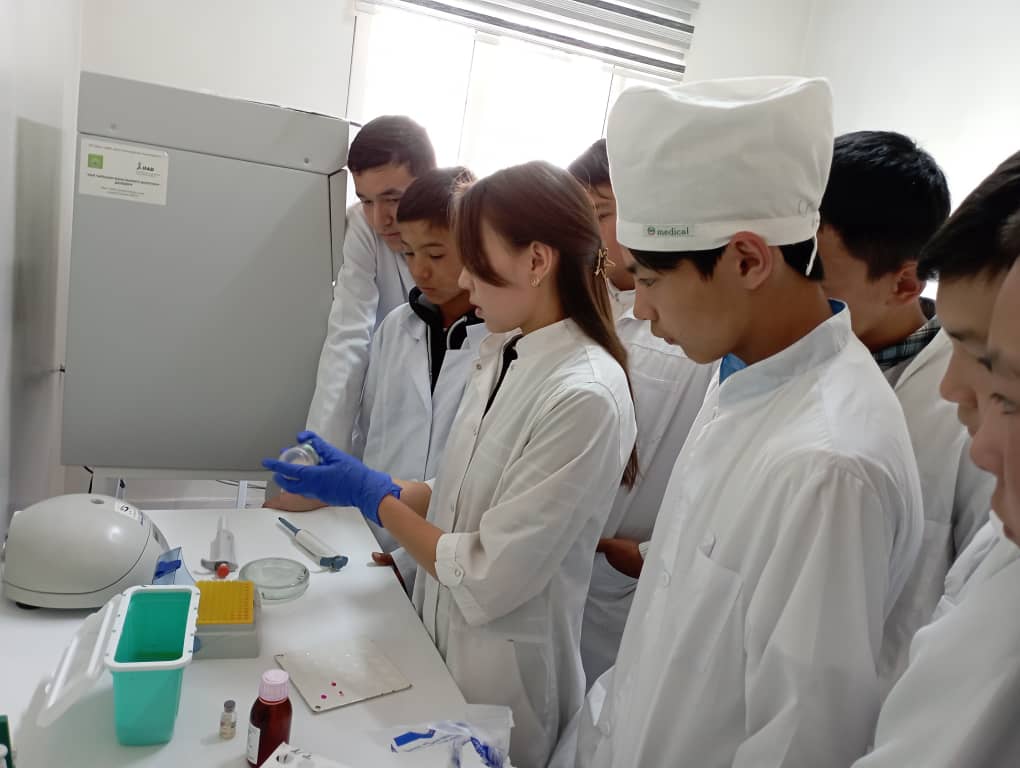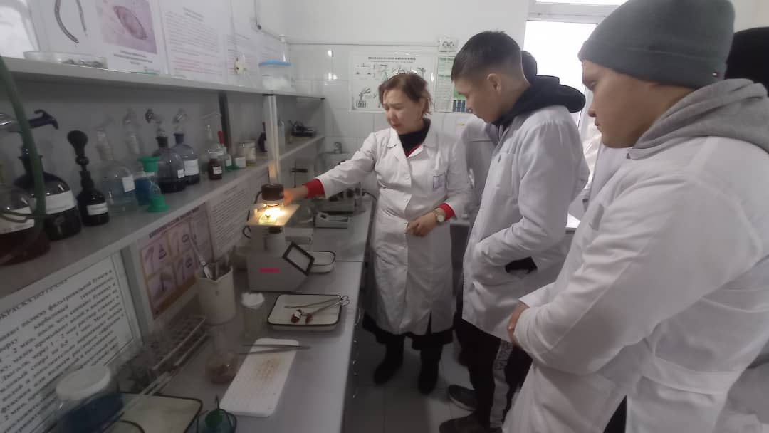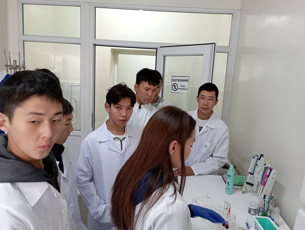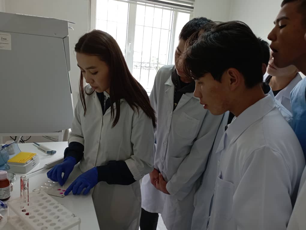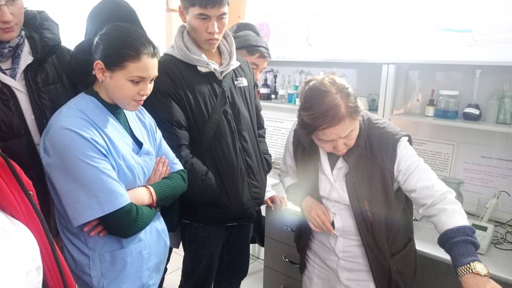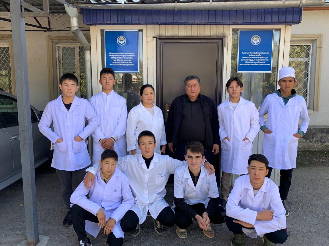 Выездной урок в группе 1 Вет Б, в лаборатории по изучению бруцеллеза, Кыргызского научно-исследовательского института ветеринарии им.А.Дуйшеева. Серологическое исследование (РБТ, РИД. и тд.)