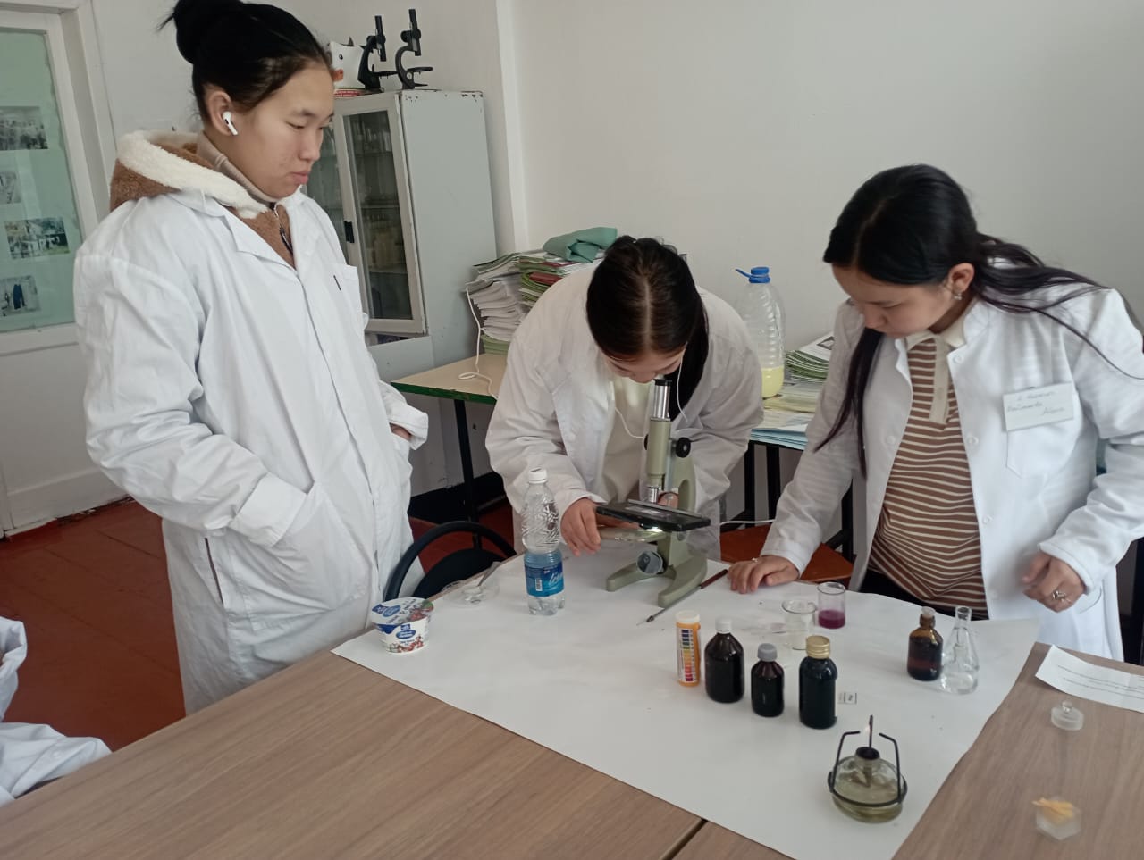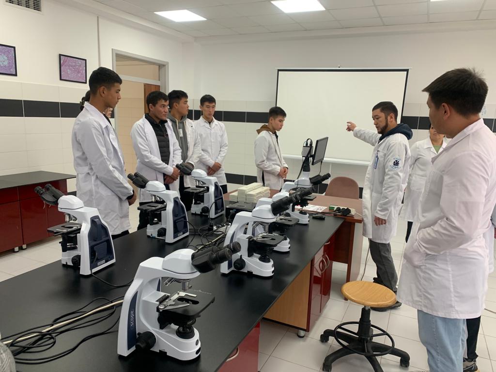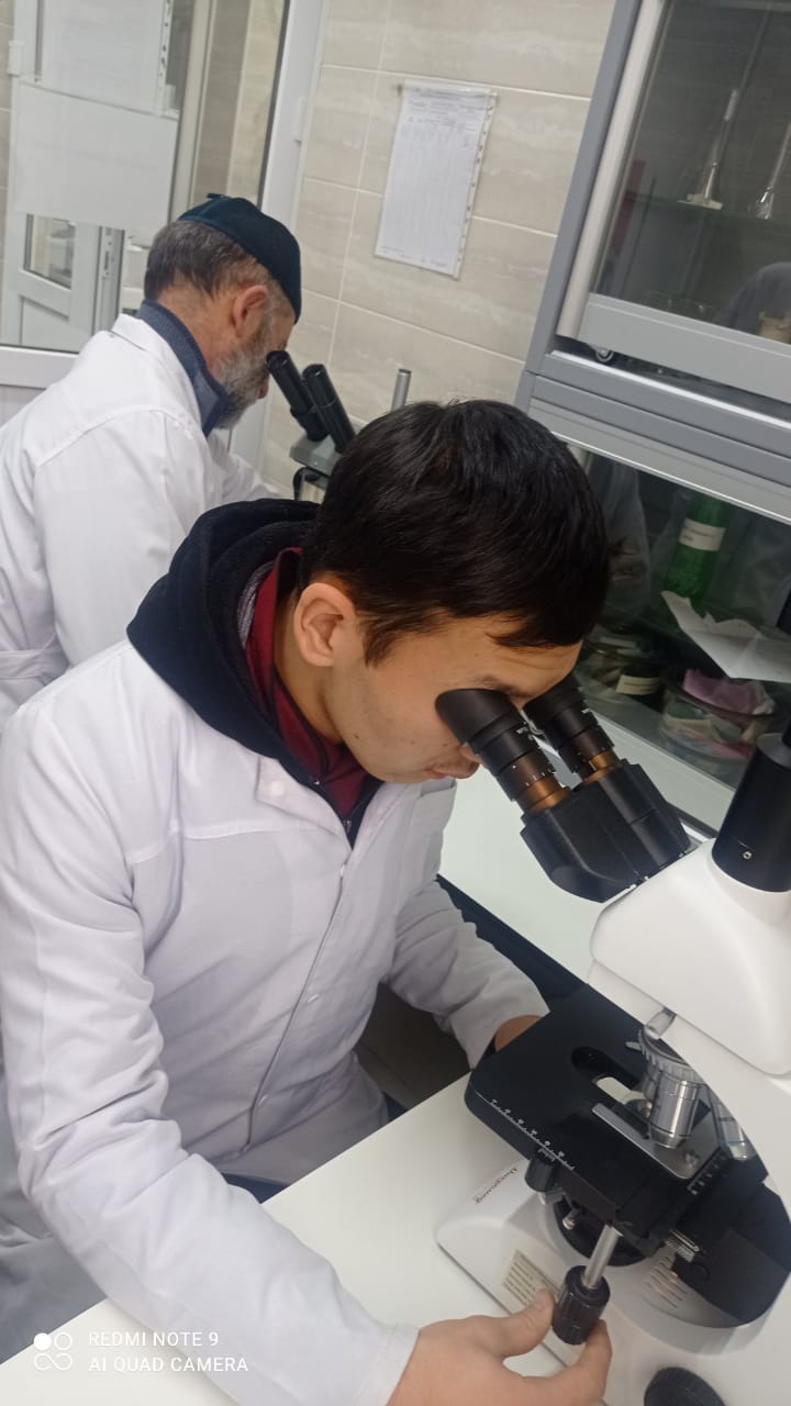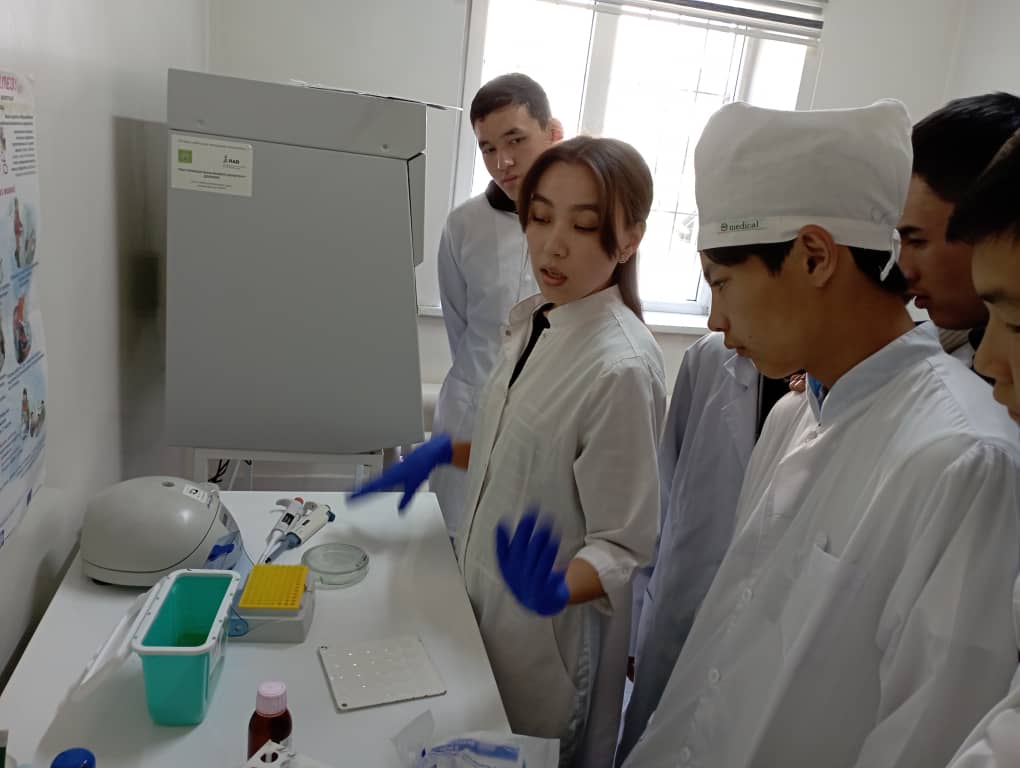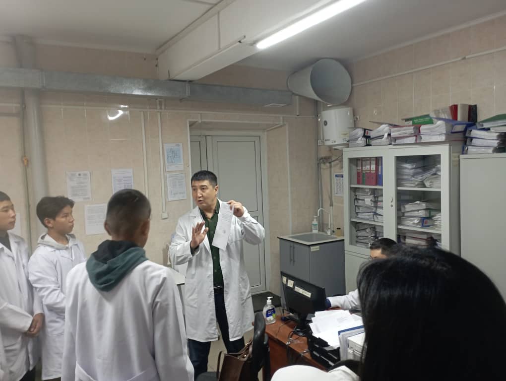 Выездной урок в группе 1 Вет Б, в лаборатории по изучению бруцеллеза, Кыргызского научно-исследовательского института ветеринарии им.А.Дуйшеева. Серологическое исследование (РБТ, РИД. и тд.)