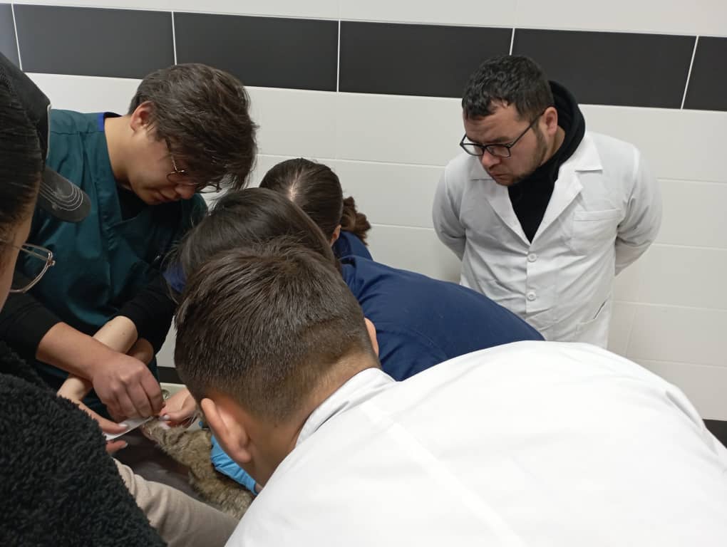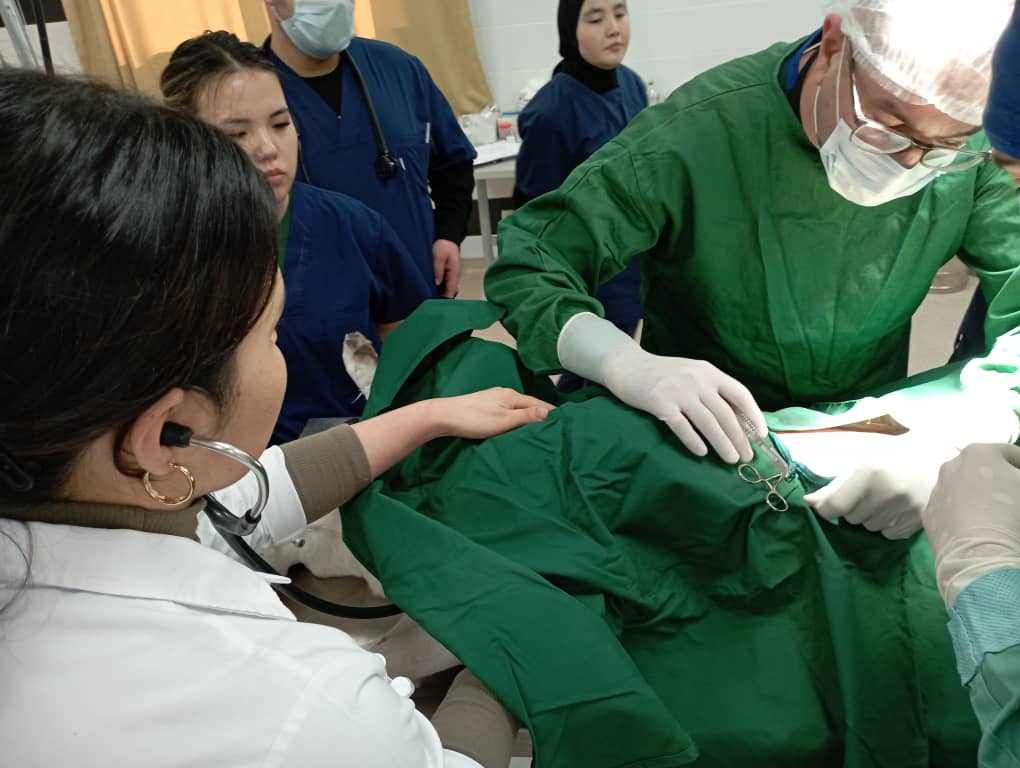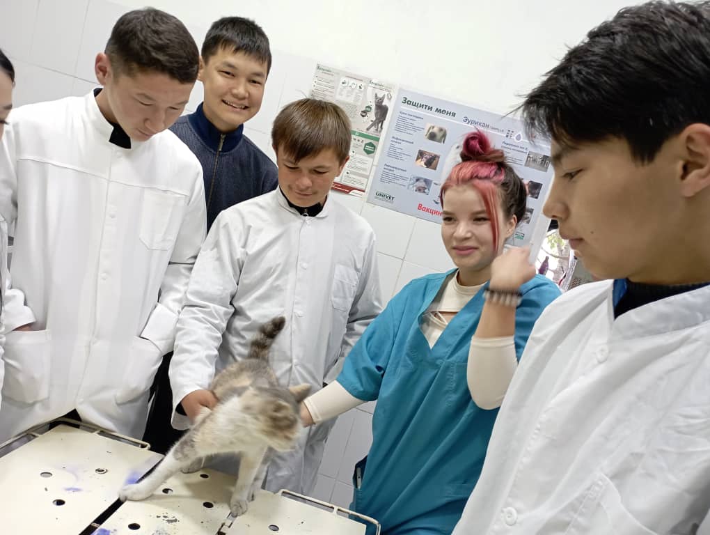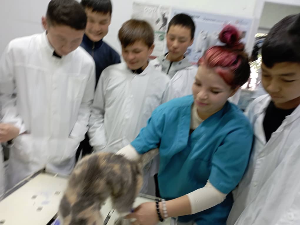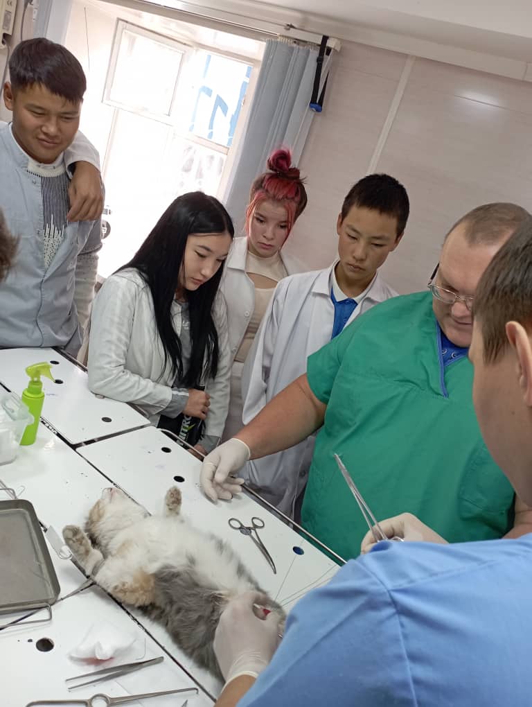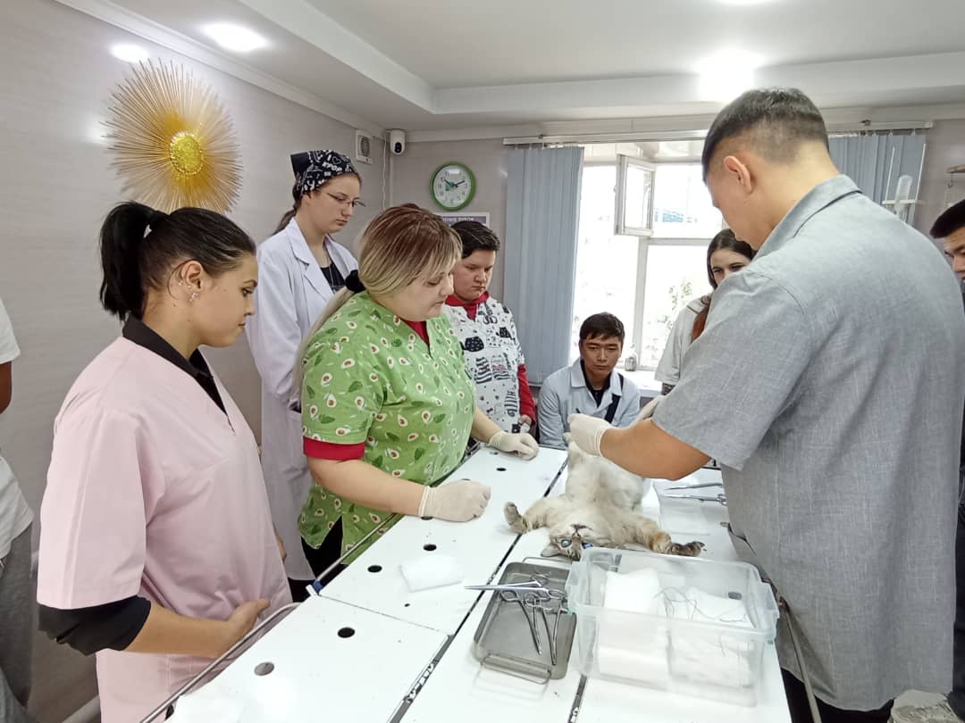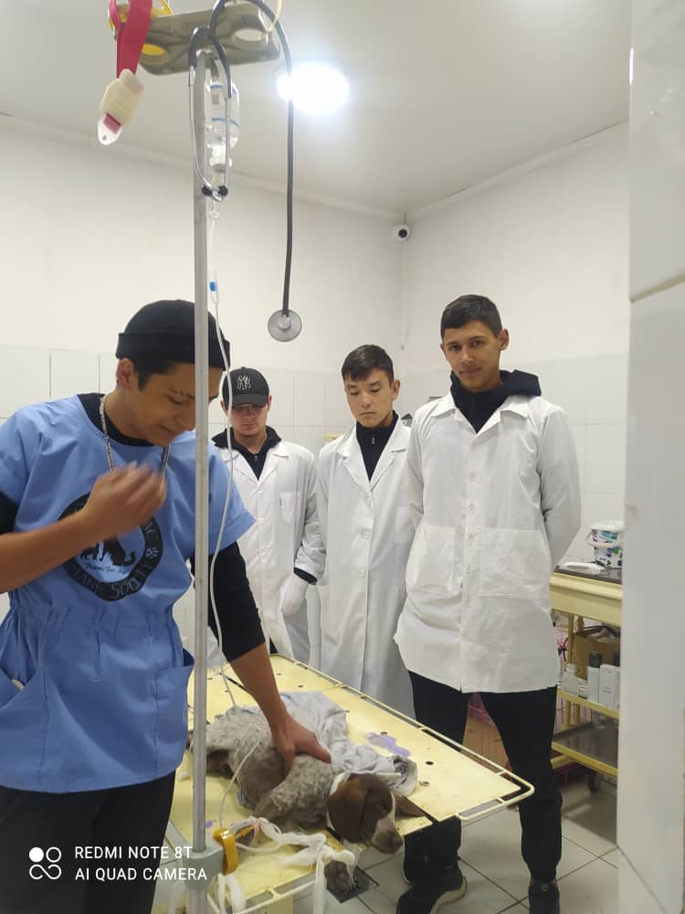 Группа 3 Вет Б выездной урок по предмету Акушерство, в клинике университета Манас, стерилизация кошки