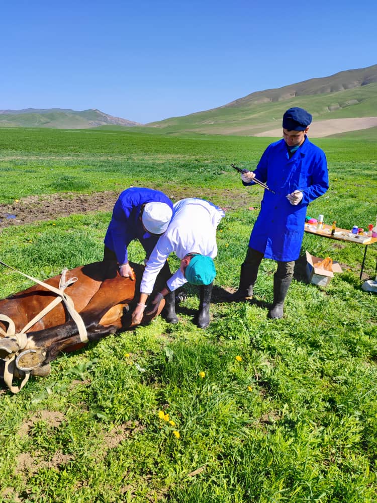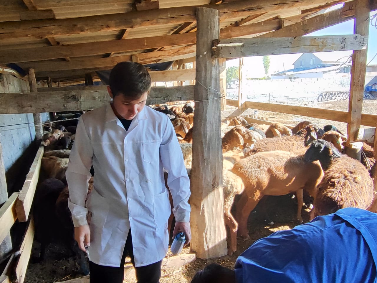 Идёт активная практическая работа студентов 2 вет А группы по учёту, дегельминтизации и отчету животных сельской управы Лебединовка Аламудунского района