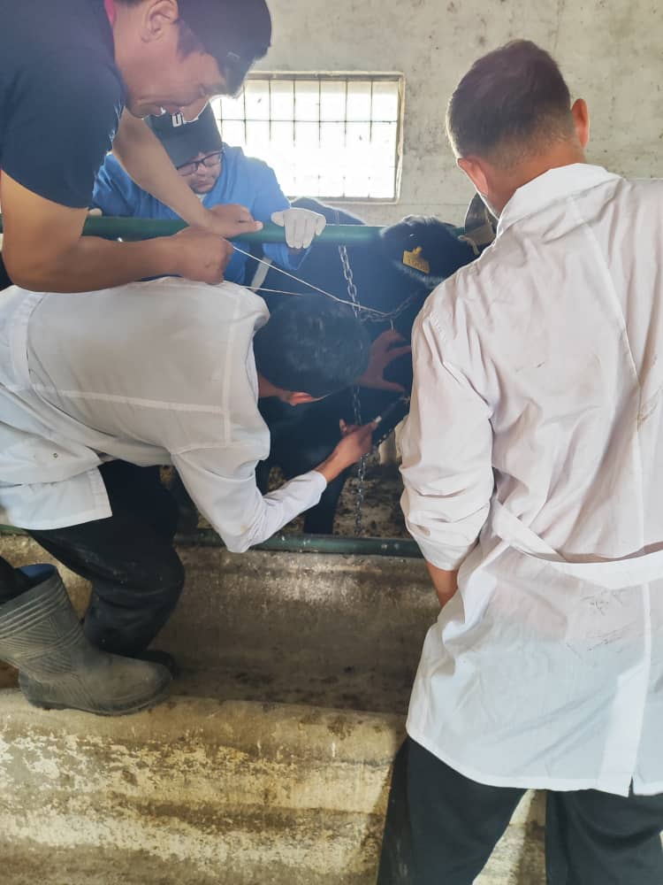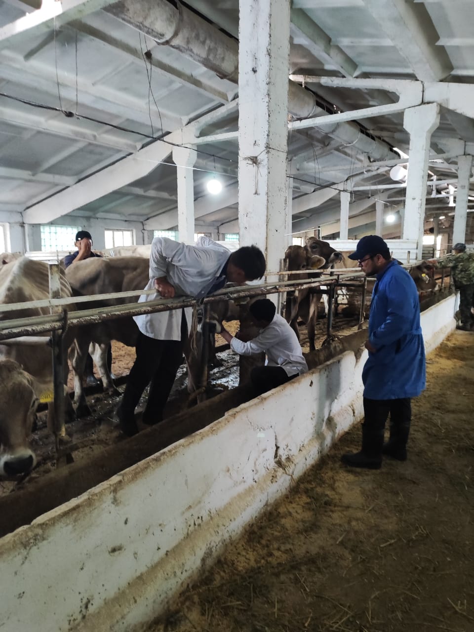 гр.3-вет А учебный практика по "Эпизоотологии". Биркование животных, фиксация, вакцинация против ящура, забор крови для исследования на бруцеллёз и туберкулленизация целью выявление туберкулёза у крупного рогатого скота.