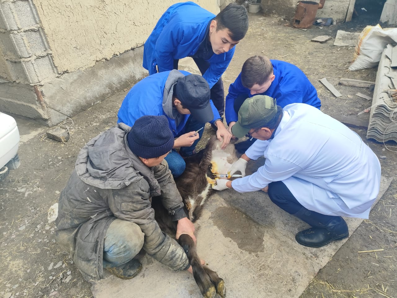гр. 3 вет А учебный практика по "Эпизоотологии" вакцинация против ящура и туберкулёзация, забор крови. п.Киргшелк